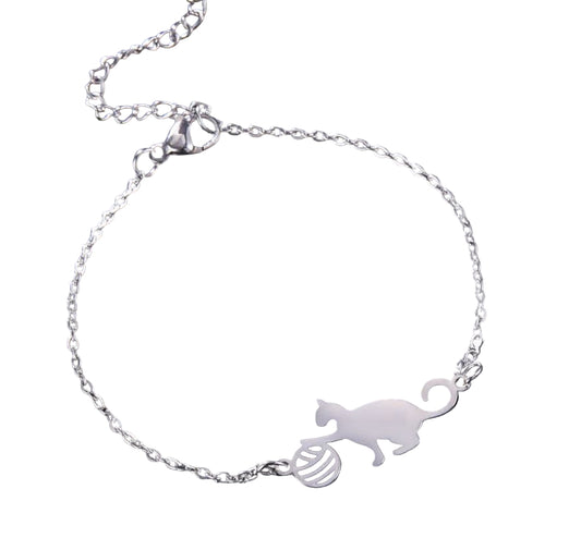 Engravable Cat & Yarn Stainless Steel Bracelet